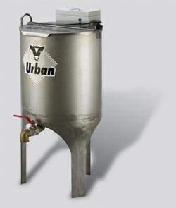 Voor de voedering van volle melk is de Urban roestvrijstalen volle melk tank de ideale oplossing voor alle Urban kalverdrinkautomaten. Het langzaam lopende roerwerk zorgt ervoor dat de melk homogeen blijft. Uitgerust met een onderstel op wielen, kan melk tussen kalverenstal en melkkoeltank getransporteerd worden.