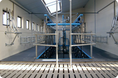 - vlotte in een uitloop van de dieren in en uit de melkstand.