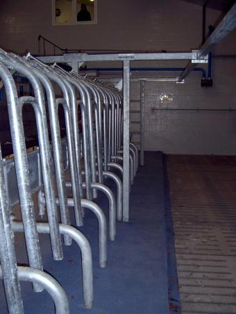 Ingang in V-vorm voor een vlotte koe inlaat. Horizontaal