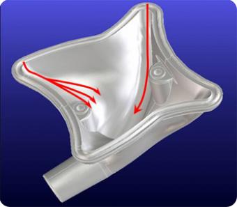 De gescheiden ingangen van de melkklauw E²VA evenals de